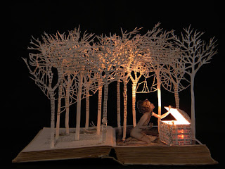 Su Blackwell is another artist who works with paper and especially books. She made a series of book sculptures, cutting-out images from old books to create three-dimensional artwork.